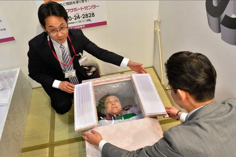 Як би приголомшливо це не звучало, але японці цілком спокійно ставляться до своєї смерті, тому тут можна побачити фотосалони, які зроблять фотографію для поховання, а також у звичайних торговельних центрах можна випробувати зручність трун та підібрати ті, які найбільше "сподобались".