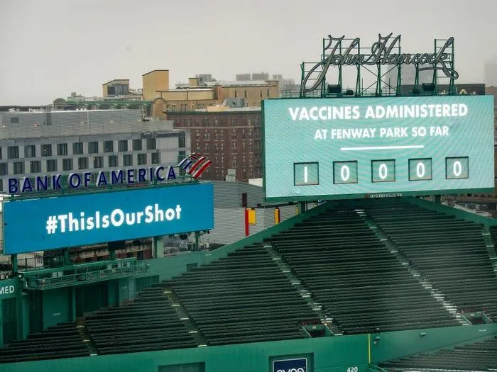 Табло цього бейсбольного стадіону замість рахунку ігор Red Sox показує кількість введених там вакцин.