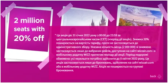 Деталі розпродажу Wizz Air / Скриншот з сайту авіакомпанії