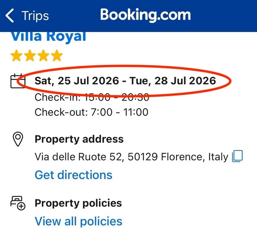 Рейчел, яку ми називаємо генеральним директором, показала електронний лист із підтвердженням адміністратору, який потім зазначив, що бронювання насправді було на 2026 рік,