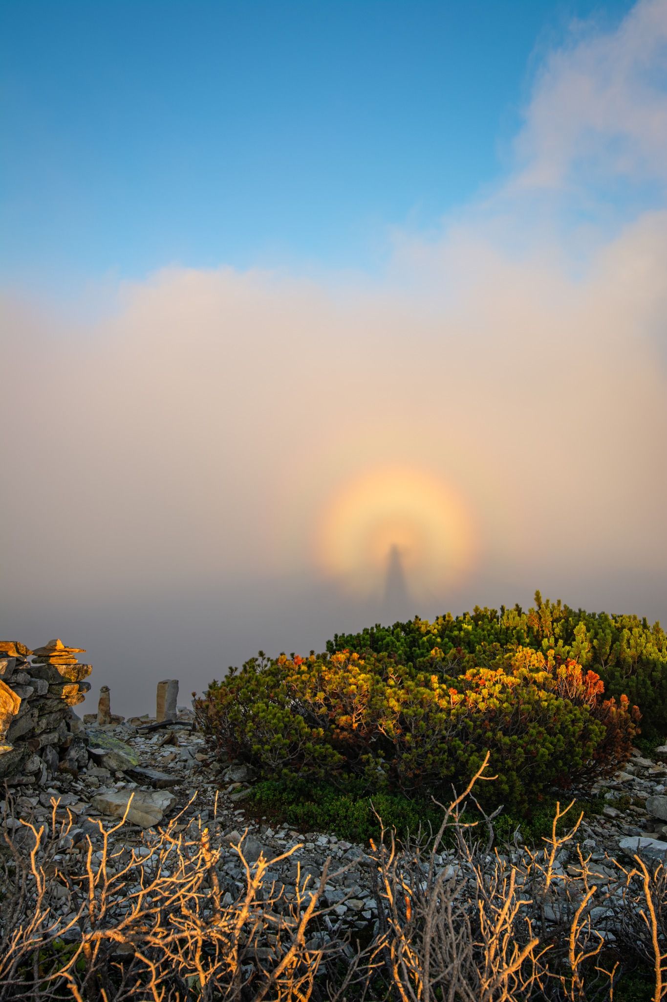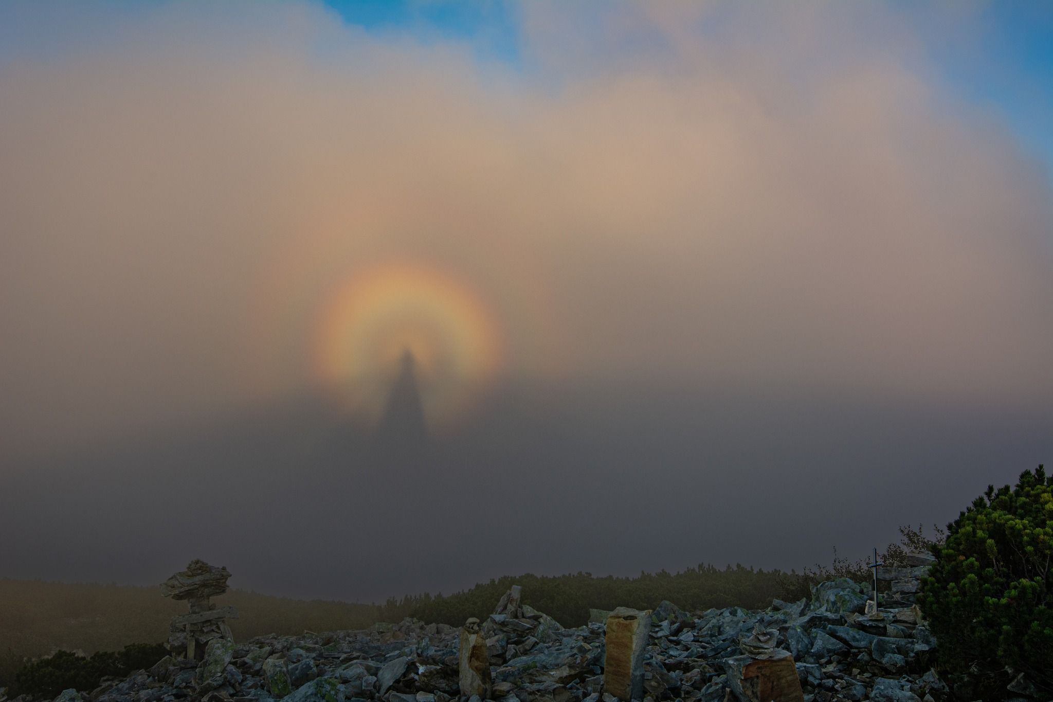 Сказати, що враження неймовірні – це нічого не сказати. Погода, світло, хмари, вітер, сонце, туман… Все змінювалося на очах і дуже швидко. Таких різних відтінків я ще не бачив. Світло змінювалося від холодного до насиченого жовтого за лічені хвилини, коли переглядав вдома фото, то не міг повірити, вони були наче зняті в різні дні. І потім з'явився він, Брокенський привид, спочатку ненадовго,