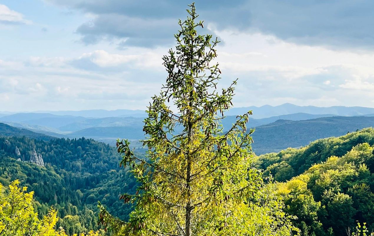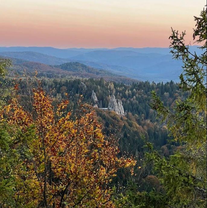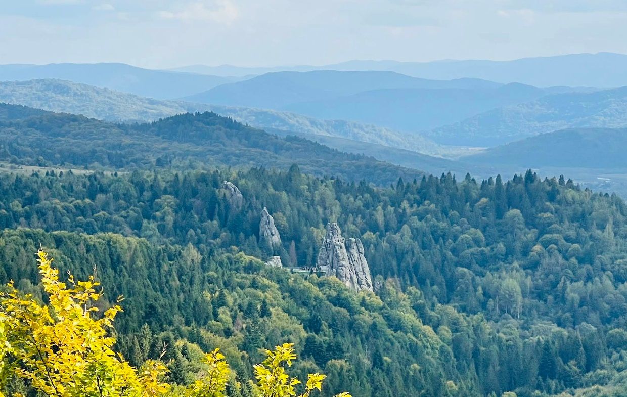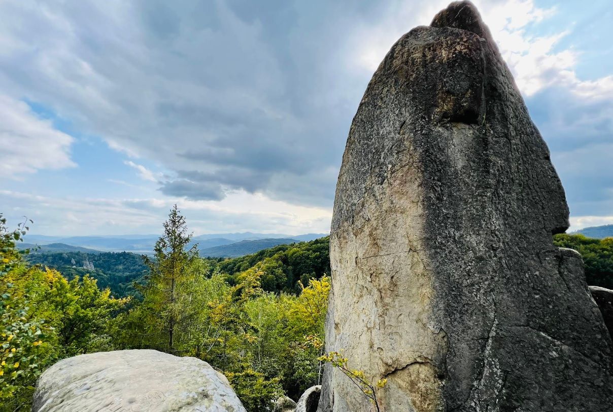 Ця таємнича локація, про яку знають не всі туристи, – скеля Гострий Камінь і Мала Скеля, пише 24 Канал. Саме зі скелі Гострий Камінь відкривається дивовижний пейзаж на Карпати та руїни фортеці Тустань.