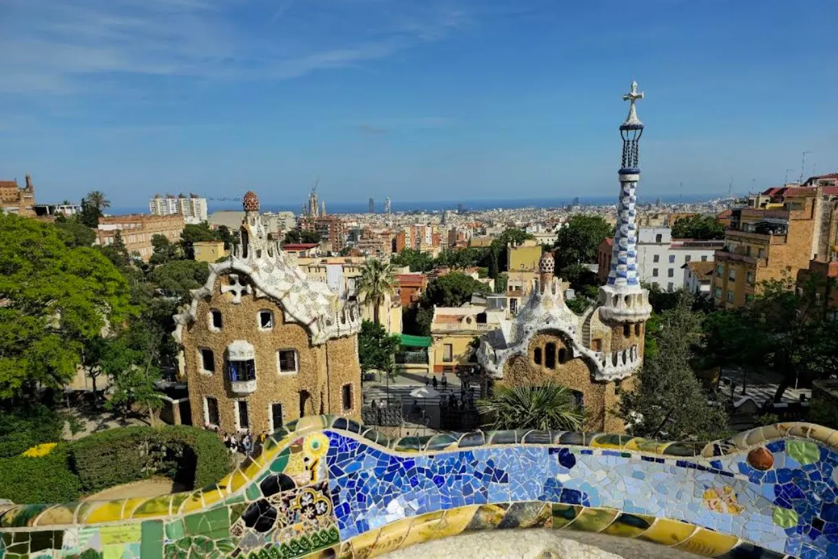 Парк з мозаїкою і казковими будівлями розміщений у центрі міста, але чітко відокремлений від нього і протистоїть йому. Він розташований на узвишші, над центральною частиною міста, і його спокійна умиротворена атмосфера протиставлена метушні ділових кварталів Барселони.