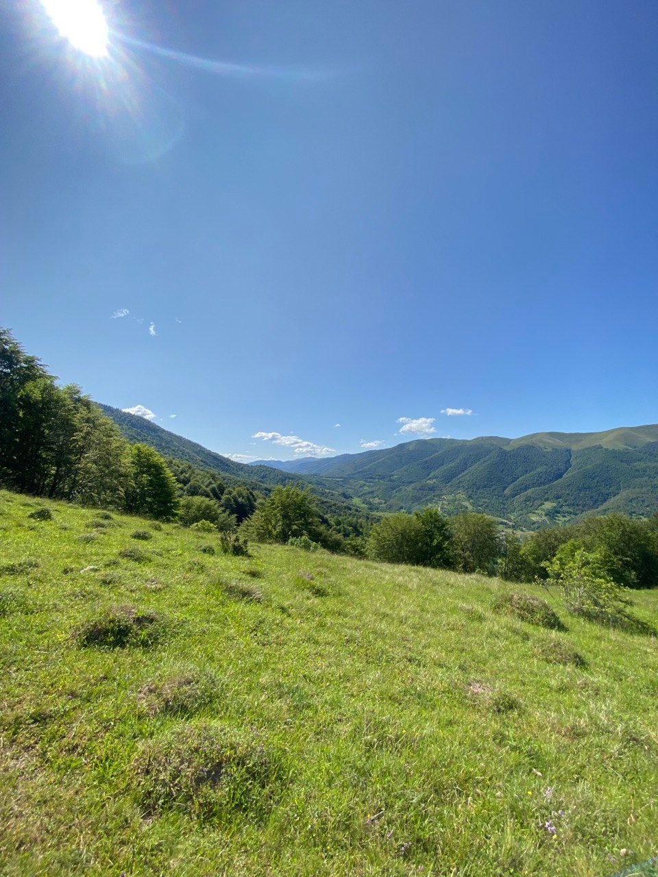 Саме звідси розпочинається стежка селом, яка плавно виводить на пагорби. Саме ці зелені пагорби, особливо один з найгостріших перед самим лісом, є найскладнішим етапом маршруту на Стримбу.
