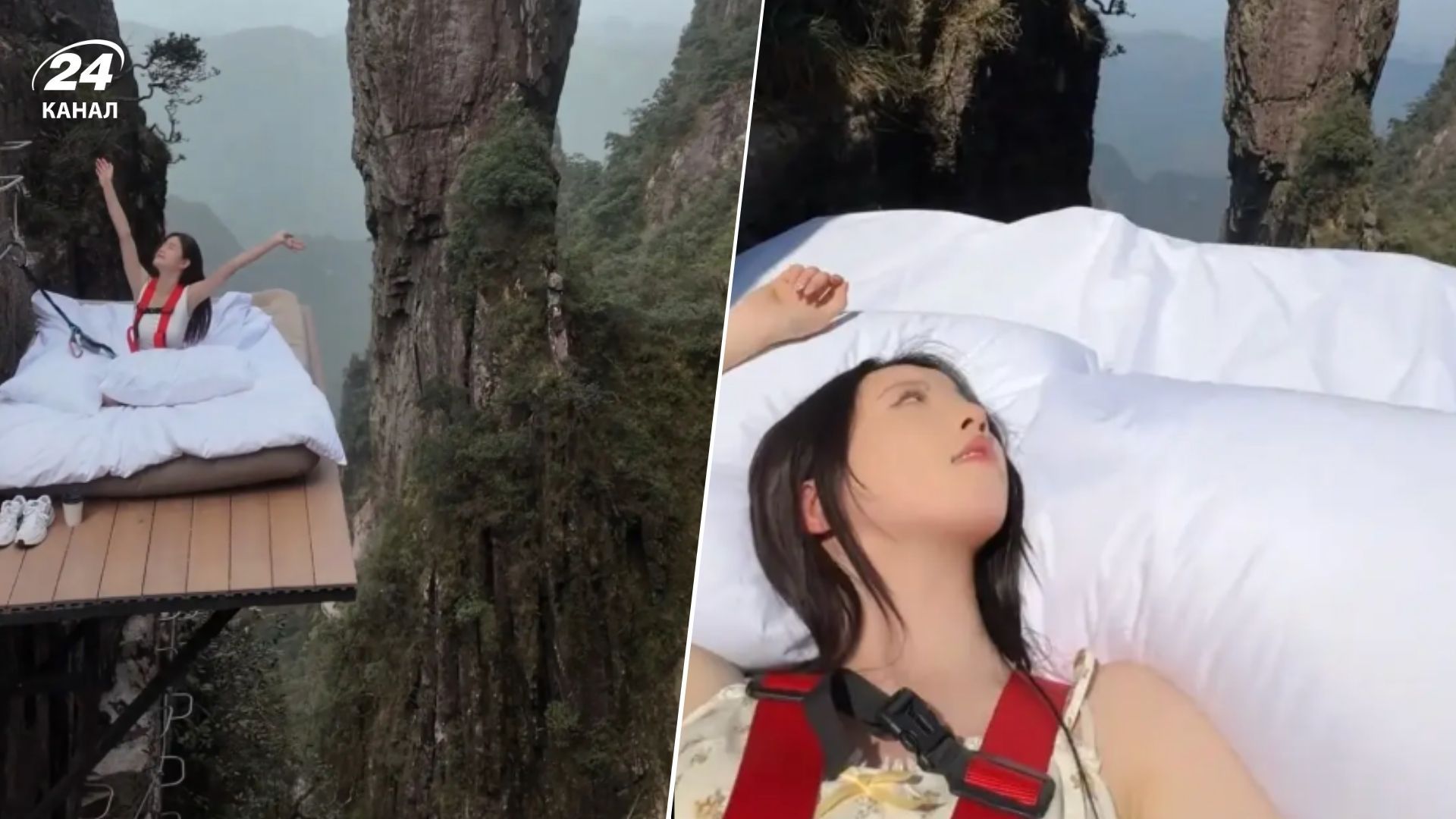 Моторошний атракціон розташований у Чженчжоу, що у провінції Хунань. Смілива інсталяція з ліжком на скелі зі стрімким обривом є частиною розваг на свіжому повітрі у цій мальовничій місцевості. Ліжко складається з дерев'яних планок, надувного двоспального матраца, ковдри і подушки. Атракціон відкрили наприкінці квітня і з того часу його відвідало вже 400 екстремалів.