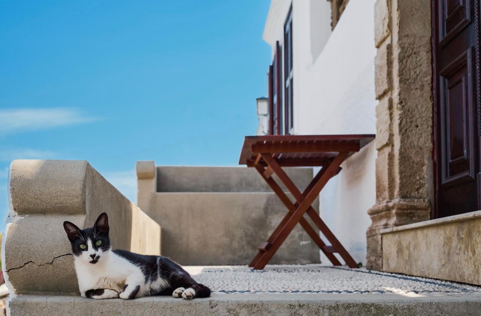 - Сусідня Греція, зокрема Афіни та острови Санторіні чи Міконос, – також рай для любителів котів. Тут коти вільно гуляють вузькими вуличками, гріються на сонці та позують туристам. Місцеві піклуються про них, створюючи годівниці та укриття. Особливо багато котів у прибережних містечках, де рибалки діляться уловом.