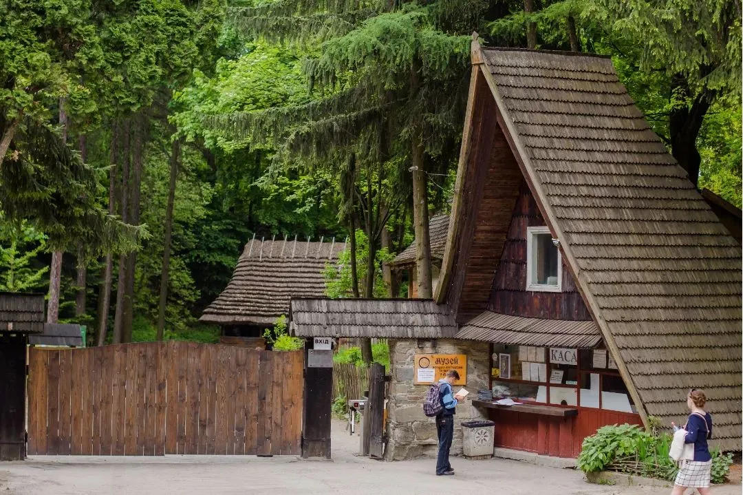 Тут зібрані понад 120 пам'яток архітектури із західних областей України. Шість із них – дерев'яні церкви, а найстаріший експонат – селянська хата 1749 року. Також тут можна побачити кузню, школу, лісопильню, сукновальню, водяний млин та вітряк.