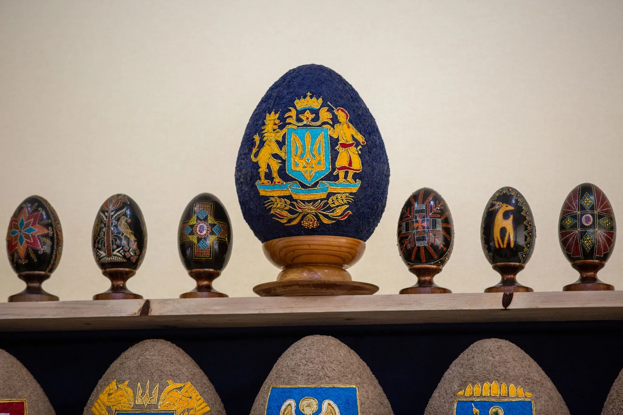 Висота кожного декоративного яйця – 32 сантиметри. Для створення писанкової колекції майстри затратили майже 15 кілограмів клею та понад 3 кілометри паперової стрічки.