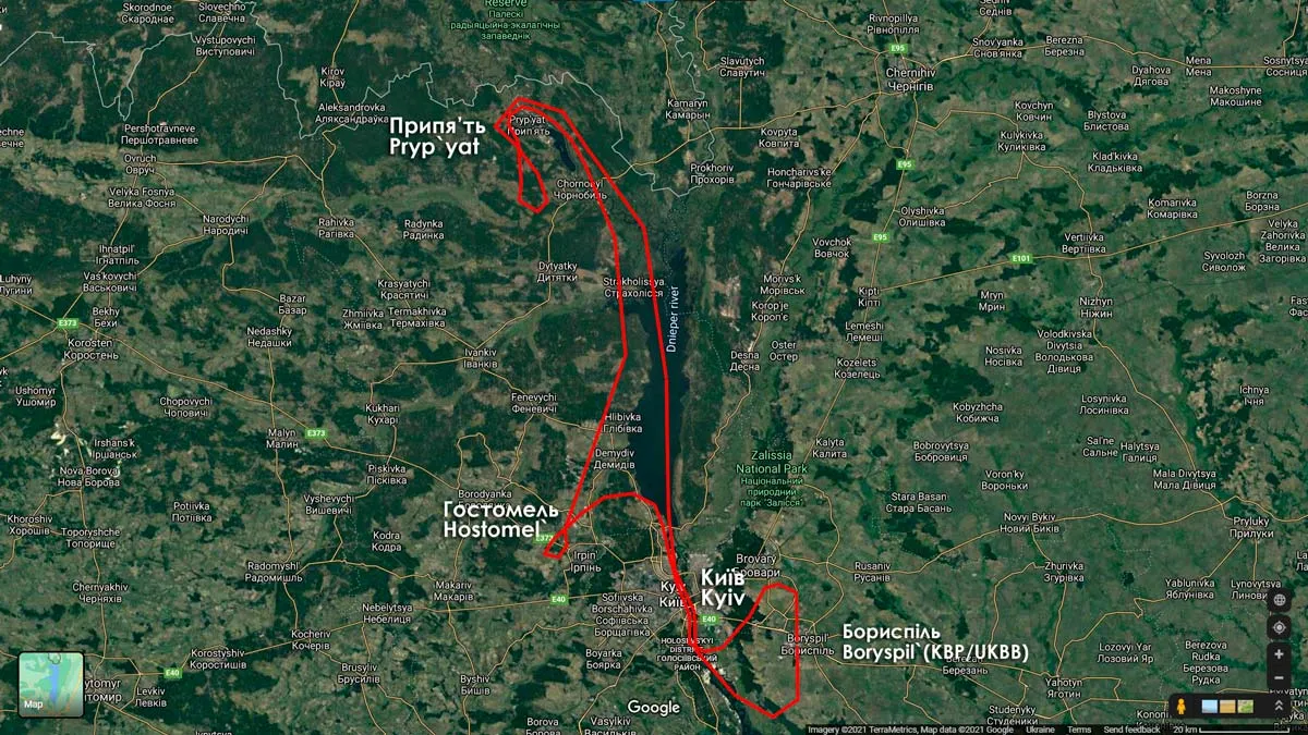 План повітряної екскурсії МАУ над Києвом і Зоною відчуження / avianews.com