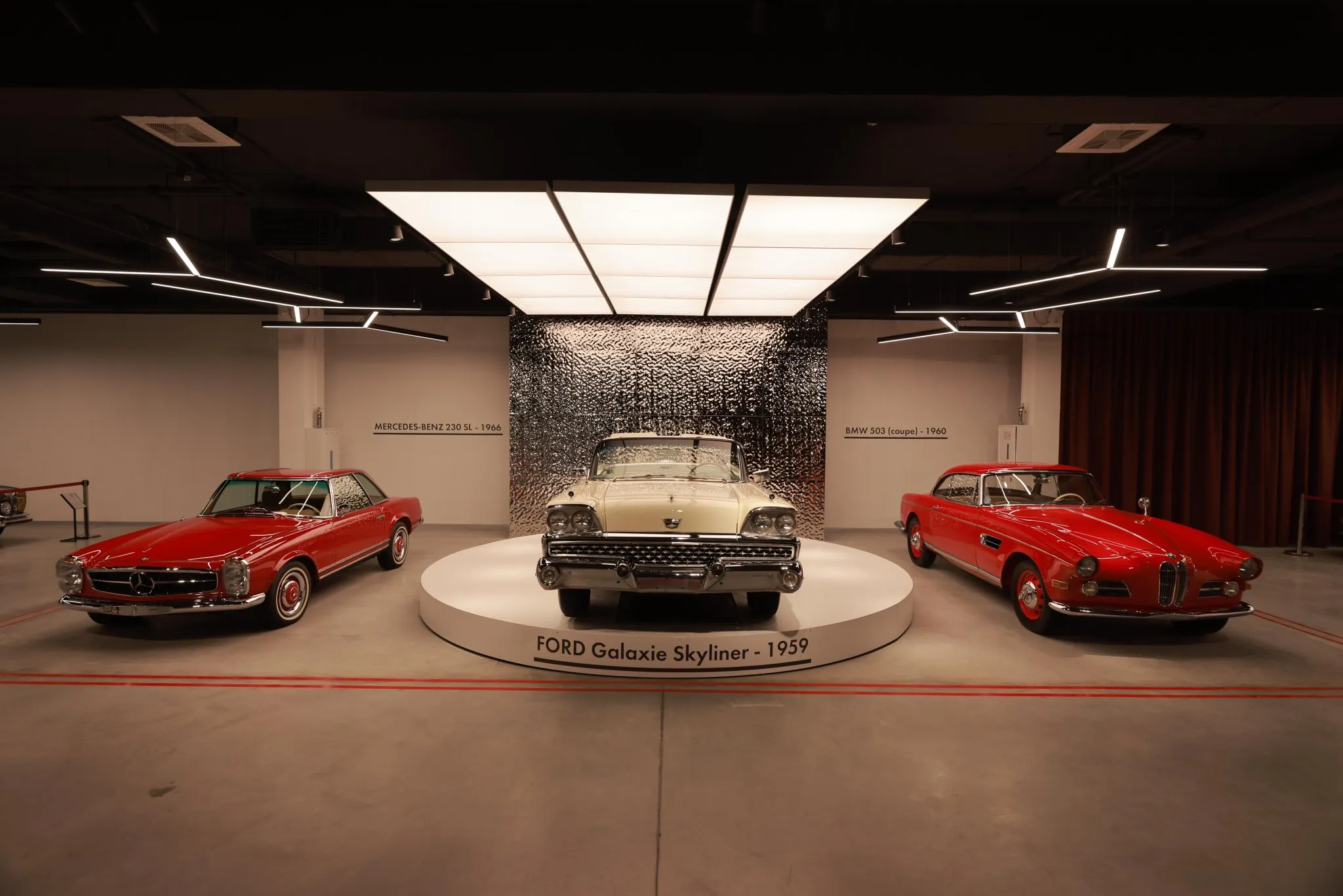 Колекція займає понад 1300 метрів квадратних і вражає масштабом та атмосферою. Серед перлин колекції: Packard Single Eight 1925 року, а також Ford Galaxie Skyliner 1959 року з унікальним механізмом автоматичного складання жорсткого даху в багажник.