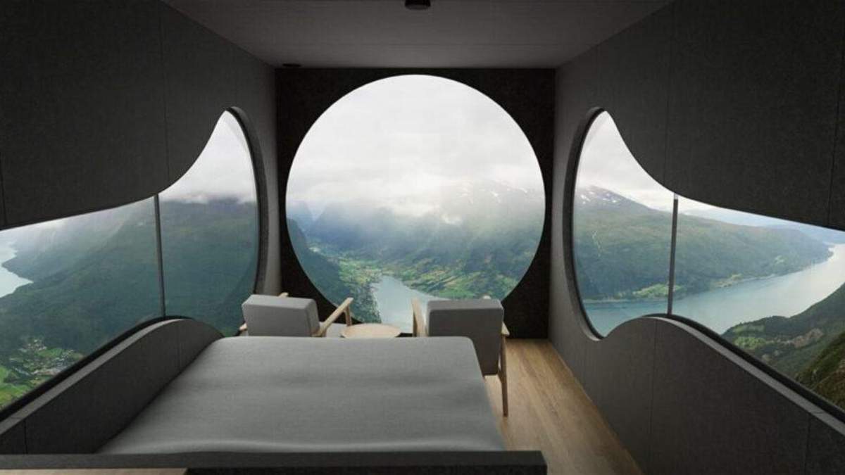 В кожному будиночку: ліжко, місце для зберігання речей, стіни з вовняною підкладкою, приглушена колірна палітра і величезні скляні оглядові вікна, щоб милуватися навколишніми краєвидами.