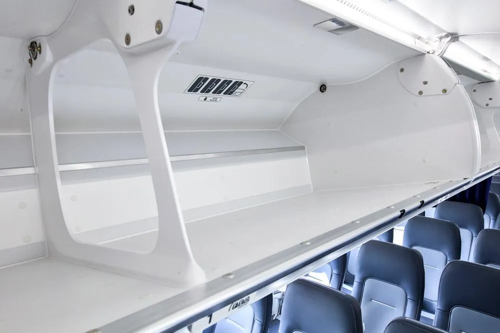 Головна особливість – полиці для ручної поклажі збільшені на 40%. За заявою авіакомпанії, це дозволить розміщувати валізи пасажирів вертикально, так число предметів на полицях можна збільшити на 60%.