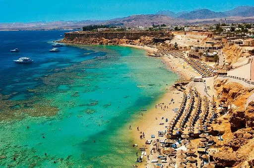 Єгипет омивається одразу двома морями: на півночі – Середземним, а на сході – Червоним. Серед туристів популярнішими є курорти Червоного моря, адже температура води тут майже не опускається нижче +20°C протягом року, тому в грудні пляжний сезон тут продовжується. Найбільш відвідуваними курортами на узбережжі Червоного моря є: Хургада, Шарм-ель-Шейх, Макаді, Марса-Алам, Сома-Бей, Дахаб, Таба і Бур-Сафага.
