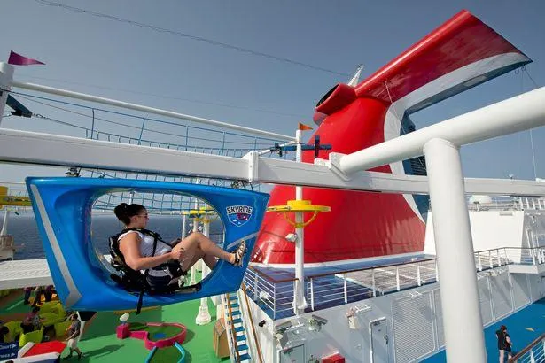 Забудьте о среднем прогулку на велосипеде землей - на карнавальных кораблях вы можете сесть на SkyRide, где едете на велосипеде, подвешенном высоко над палубами корабля, с видом на мероприятия и океан внизу. Высота аттракциона составляет 50 метров над уровнем океана.