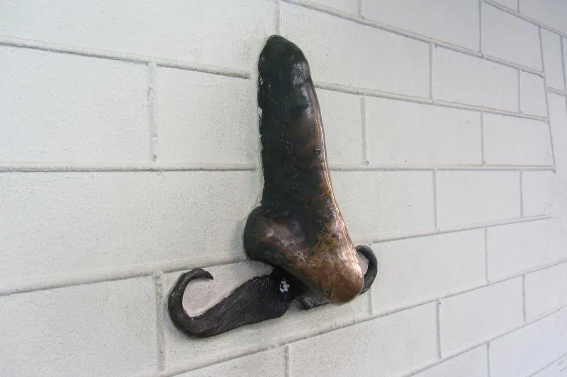 Одно из самых мистических и древних мест Киева – это, бесспорно, Андреевский спуск. Одно только проживание Михаила Булгакова на этой улице вызывает огромный интерес среди туристов. В 2006 г. здесь вдруг появилась скульптура носа Николая Васильевича Гоголя. Автор памятника – Олег Дергачев. Изначально скульптура была размещена на стене дома по адресу Андреевский спуск, 34. Однако позже переехала немного выше – на Десятинную, 13.