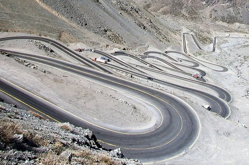 Эта дорога проходит в Андах между Чили и Аргентиной. Крутые склоны, резкие повороты вместе с отсутствием ограждений и отбойников делают Лос-Караколес особенно опасным. Ситуация осложняется снежным покровом, который не тает почти круглый год.