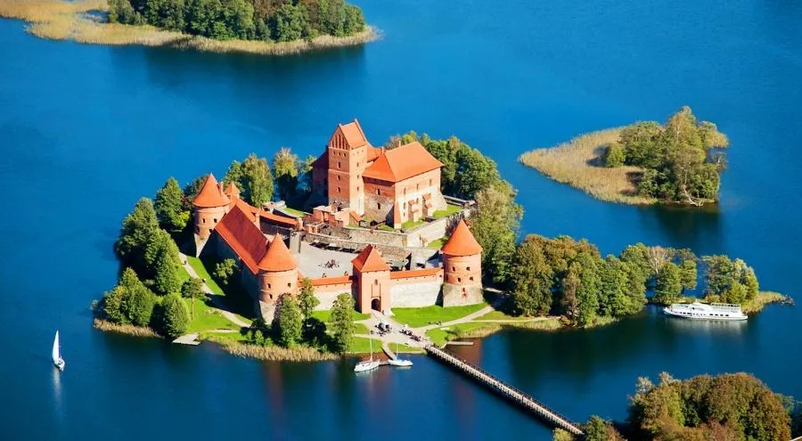 Расположен в литовском Тракае на озере Голуэй. Замок иногда упоминается, как "Маленький Маринберг". Строительство каменного сооружения было начато в 14 веке, а большая часть основных работ завершилась в 1409 году. Тракай был одним из главных центров Великого Герцогства Литовского, играя важное стратегическое значение. Сегодня замок – туристический центр, где проходит множество концертов, праздников и фестивалей. Он является одним из самых красивых исторических памятников и памятников Литвы. В 1962 году здесь был открыт музей. В течение года Тракай привлекает около 300 000 посетителей.