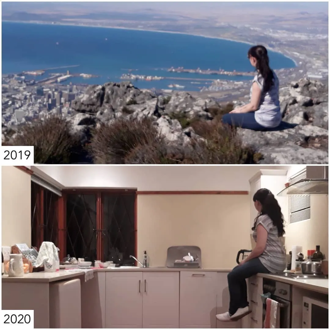 Блогерша из Южно-Африканской Республики Шэрон Во в своем инстаграме остроумно показала, как во время карантинов и локдаунов путешественникам держать себя в тонусе. Всего-то и надо, что повторить дома свои любимые фотографии!
