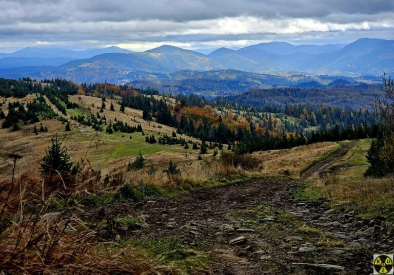 - Маршрут возле Славского проходит через несколько вершин, включая Черную Рипу (1280 метров), и простирается на 20 километров или 8 часов хода.