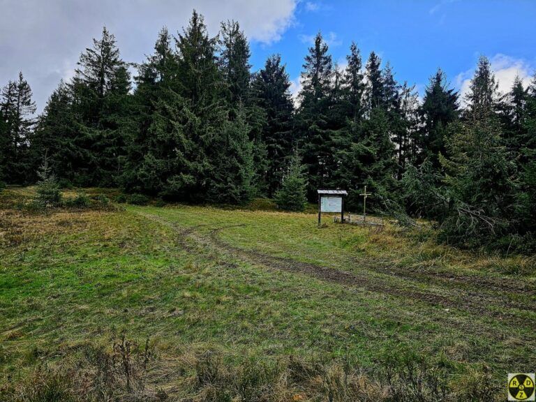 Ориентиром через несколько сотен метров должна стать хижина и крест. Это будет та самая граница трех областей (Перекрестное) и туристический приют на ней.