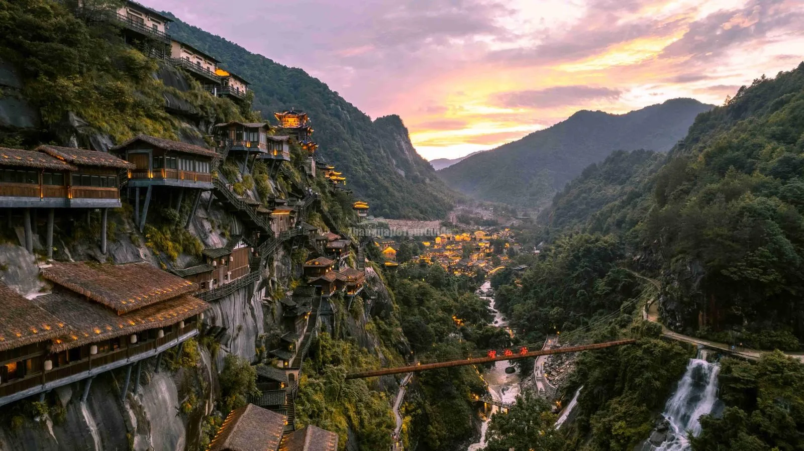 Захватывающий, но в то же время жуткая долина Wangxian Valley предлагает настоящий экстрим – спальные домики рядом со смертельными обрывами, а в придачу еще громкие водные шоу. Сейчас это место привлекает почти 1 миллион туристов ежегодно.