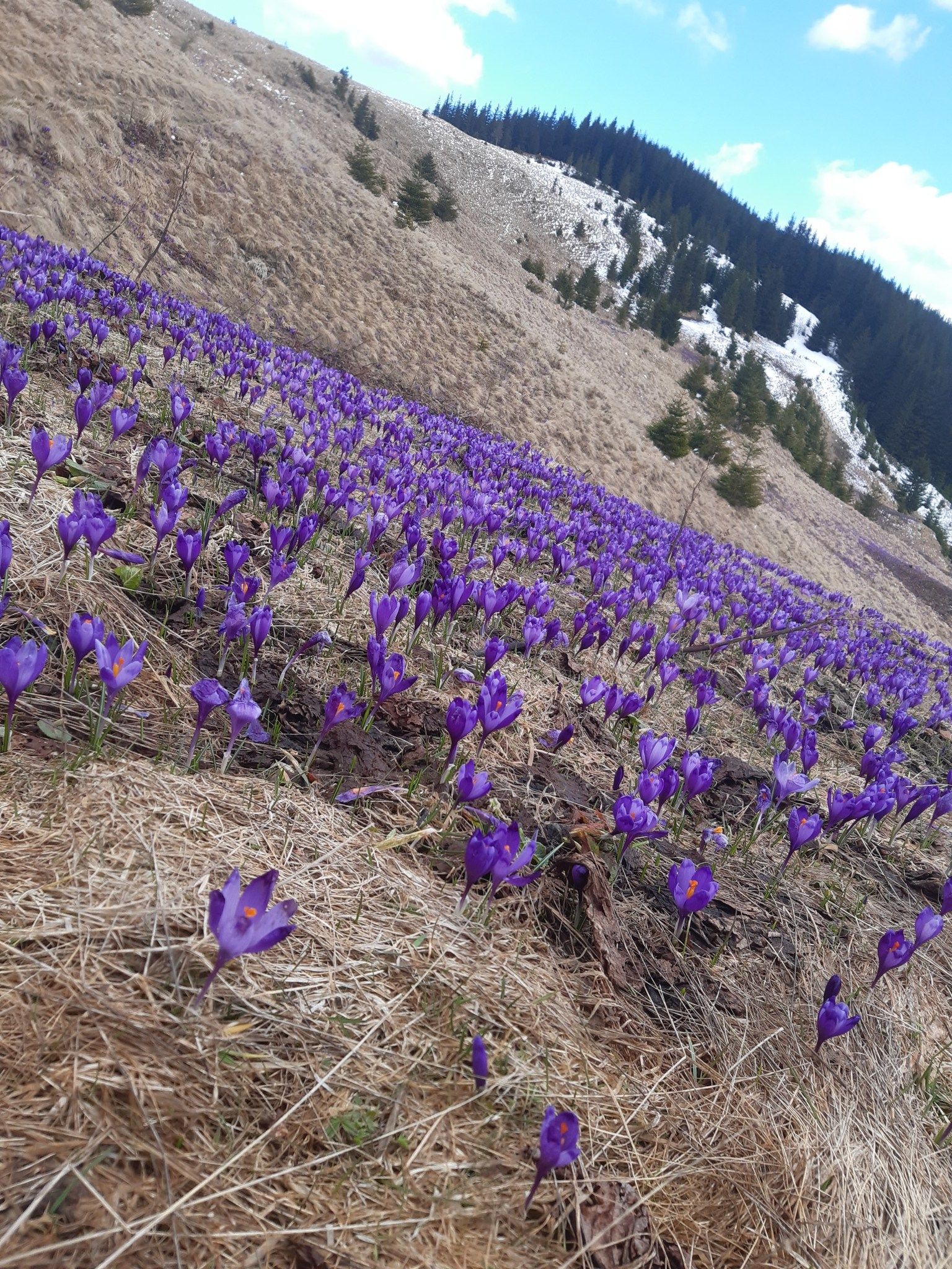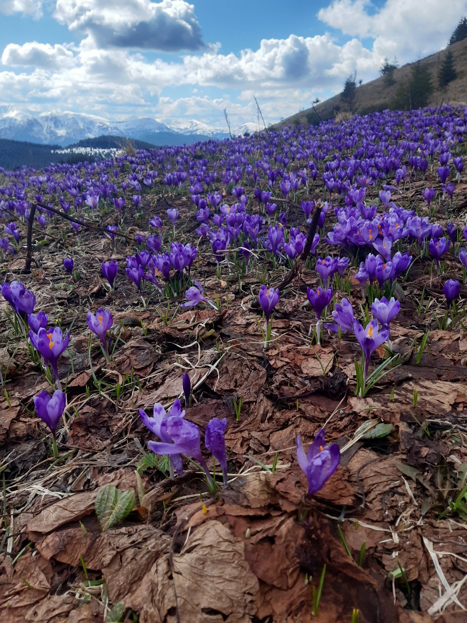 Также крокусы в апреле заметили на нескольких карпатских полонинах, среди которых Браевка и Буковен. Невероятно красиво цветы цветут в долине Веснарка и горе Кострича.