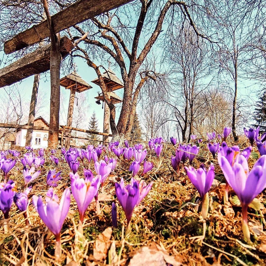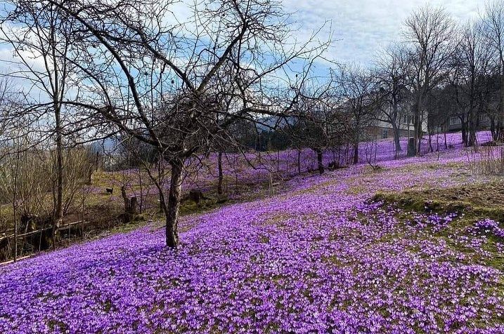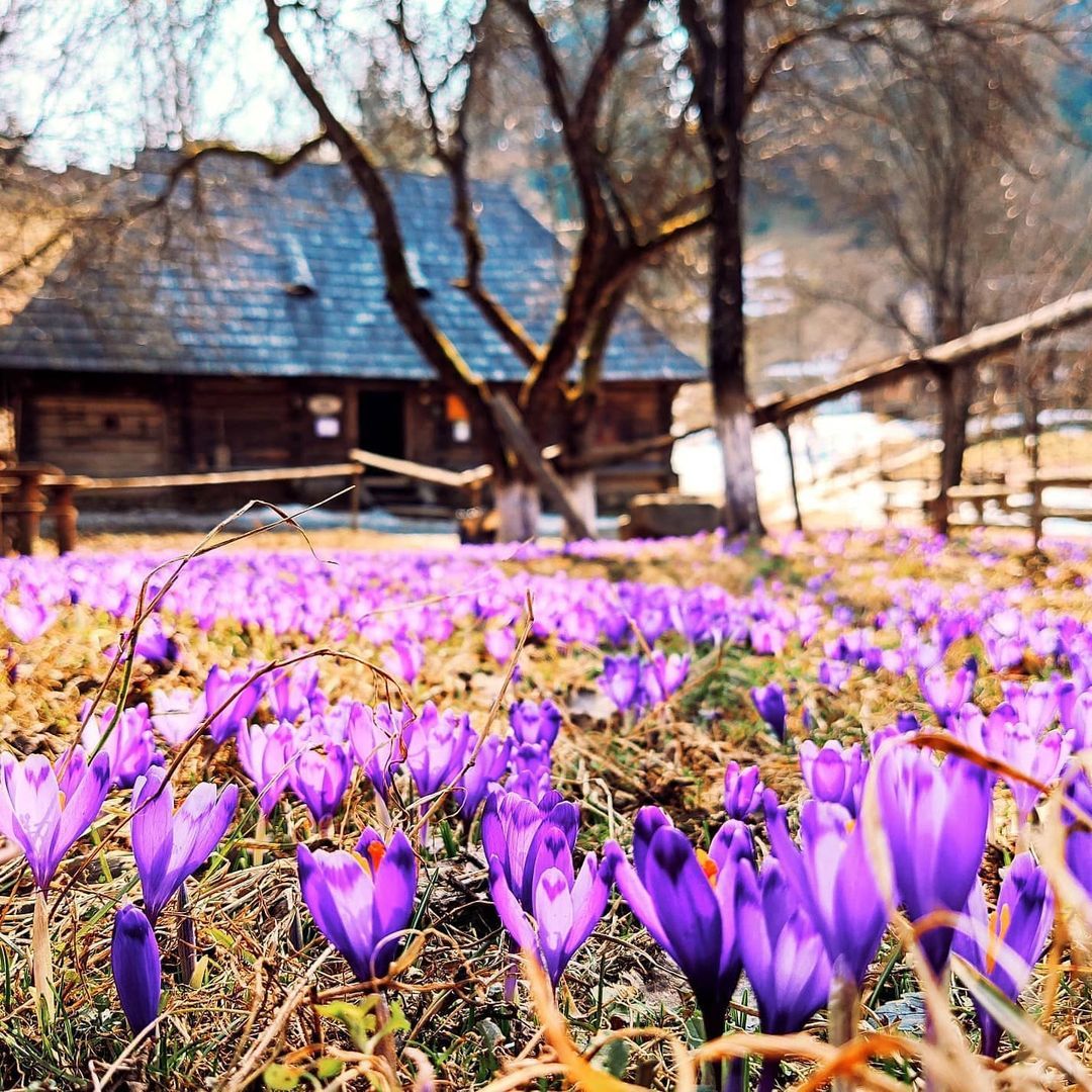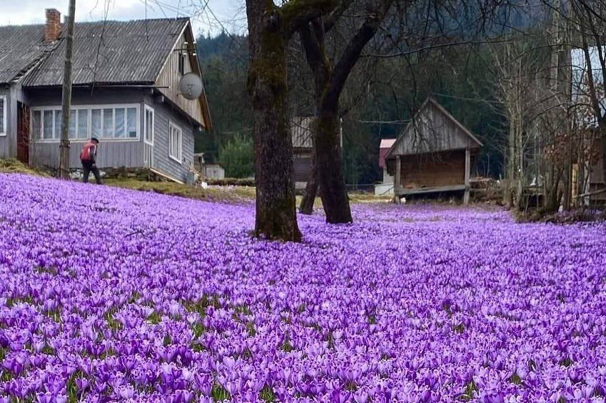 И, чтобы увидеть Крокусы, необязательно подниматься в горы. В апреле в селе Колочава, что в Закарпатской области, зафиксировали настоящий фиолетовый ковер из цветов.