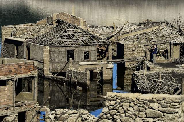 Деревня Асередо в регионе Галисия, на северо-западе Испании, была затоплена в 1992 году. Это сделали для того, чтобы создать водохранилище Альто-Линдосо, но когда уровень воды начал составлять 15%, то давно забытое поселение снова появилось на поверхности.