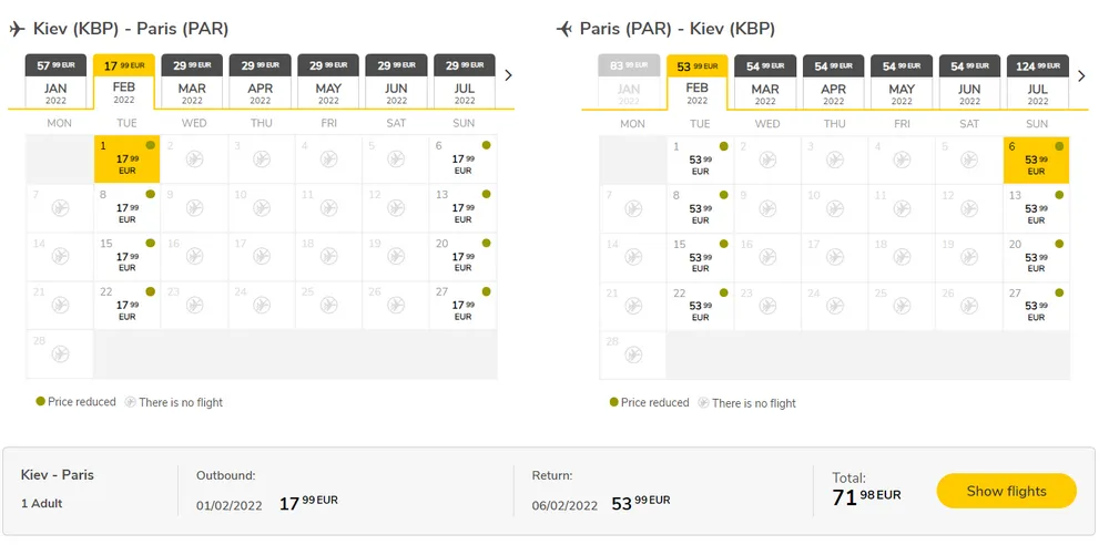 В стоимость входит ручная кладь размером 40х30х20 сантиметров. Билеты предлагают на весь февраль, включая День Валентина.