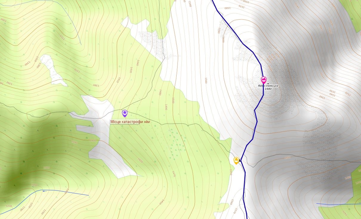 Приблизительное место падения немецкого самолета в Карпатах / Скриншот карты с сервиса "В поход по Карпатам"