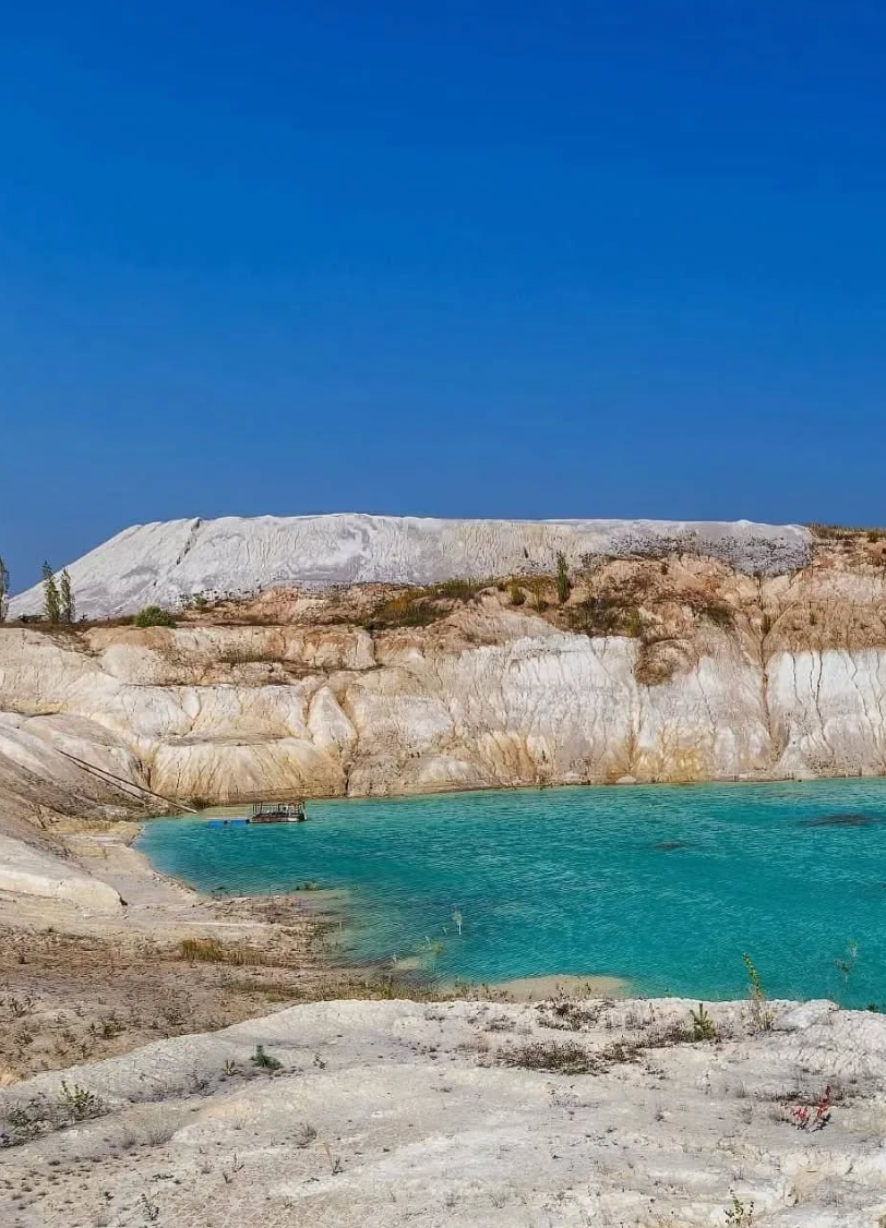 Как локация из фильма: где в Украине увидеть небесно-голубое озеро среди белых песков