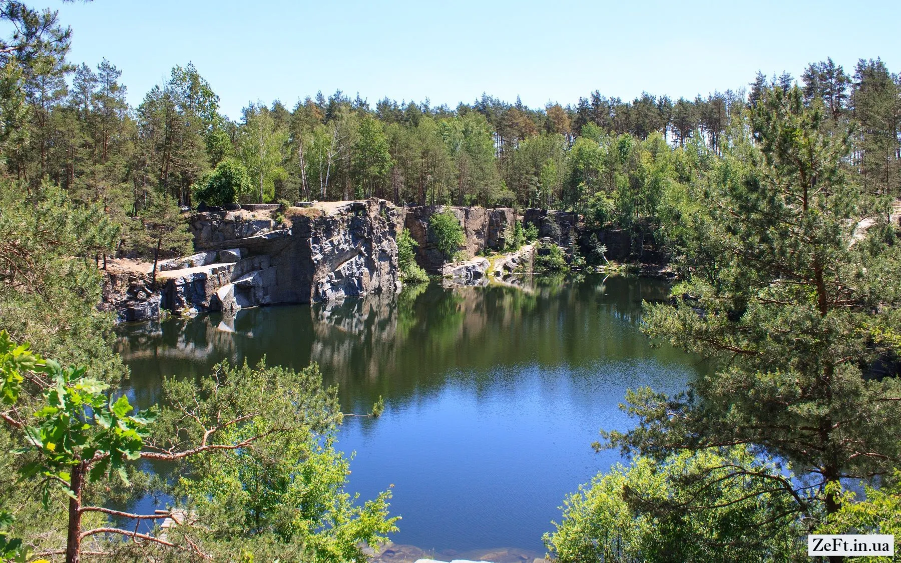В 1850-х под Коростышевом начали добывать гранит, а затем котлованы затопили. Так и образовался каньон. Всего на территории находится три "гранитных" озера. Летом скалолазы покоряют скалы. Пейзажи здесь великолепные: прозрачные озера и сосновый лес вокруг.
