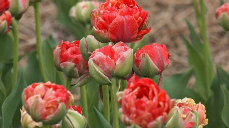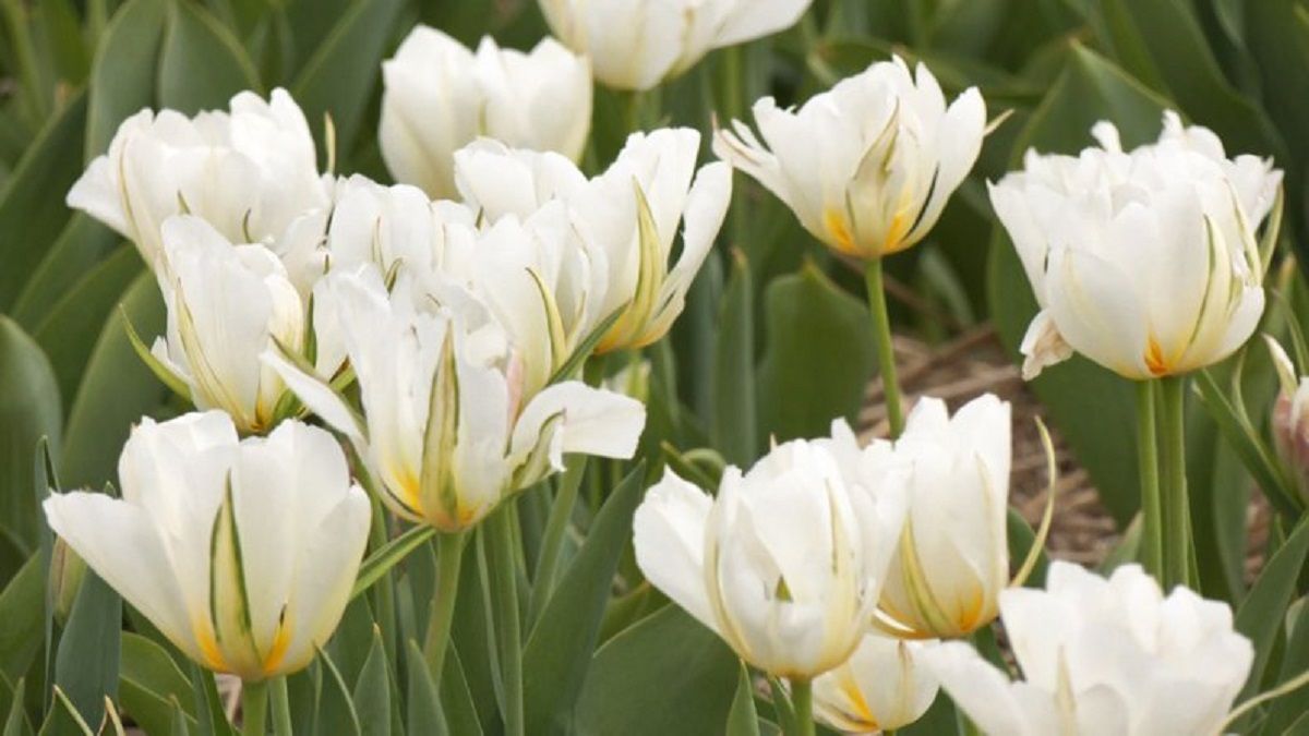 Посетители могут увидеть лилейный тюльпан. Один из популярных сортов – трехцветный тюльпан пионовидный.