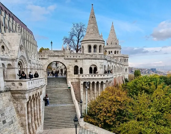 Эта терраса на Будайском холме, которая благодаря своим белым башням и аркам имеет вид, как декорация из сказки.