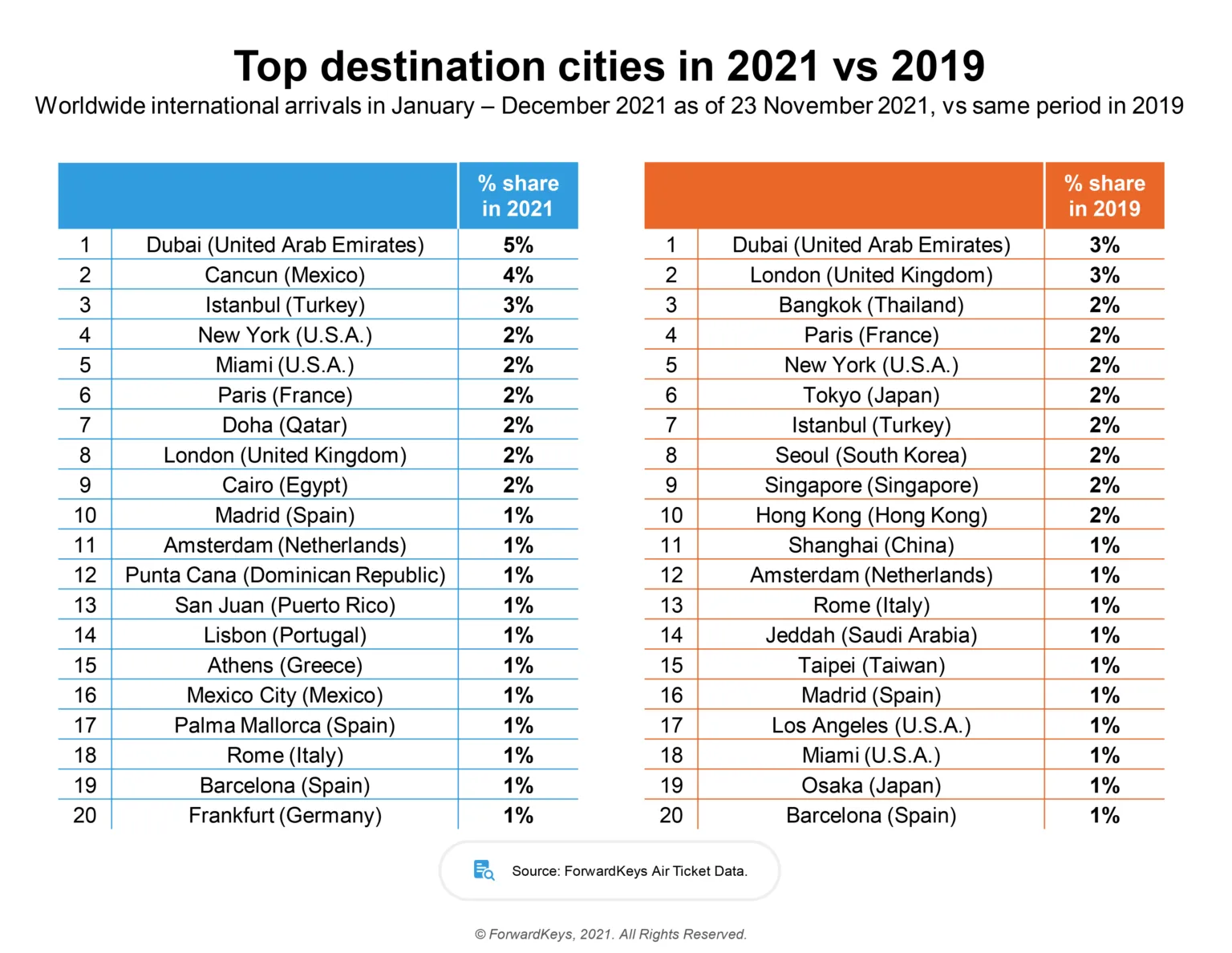 Самые популярные направления для путешествий в 2021 году и в 2019-м / Forward Keys
