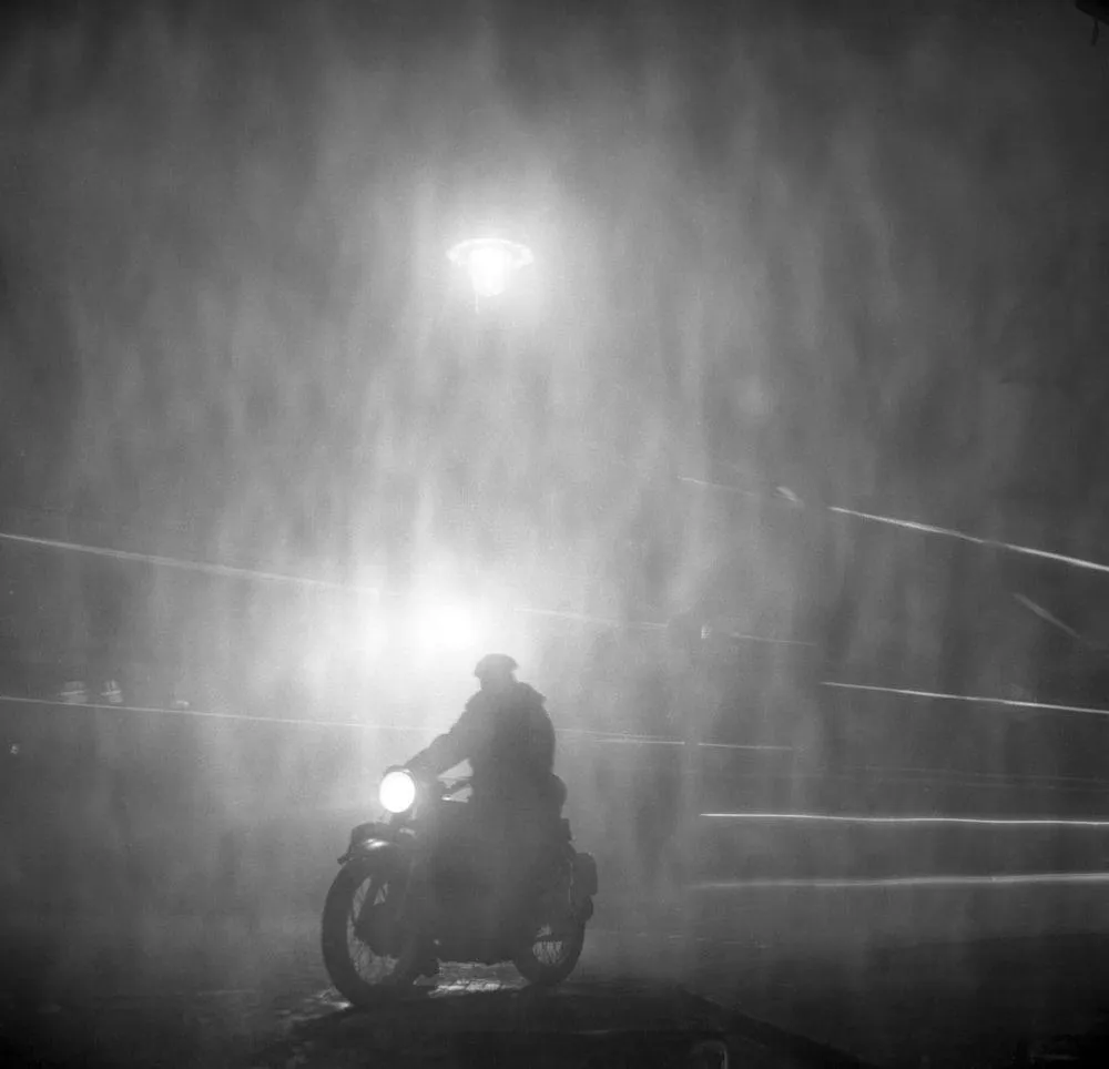 Мужчина едет на мотоцикле во время сильного тумана / Фото Amusing Planet