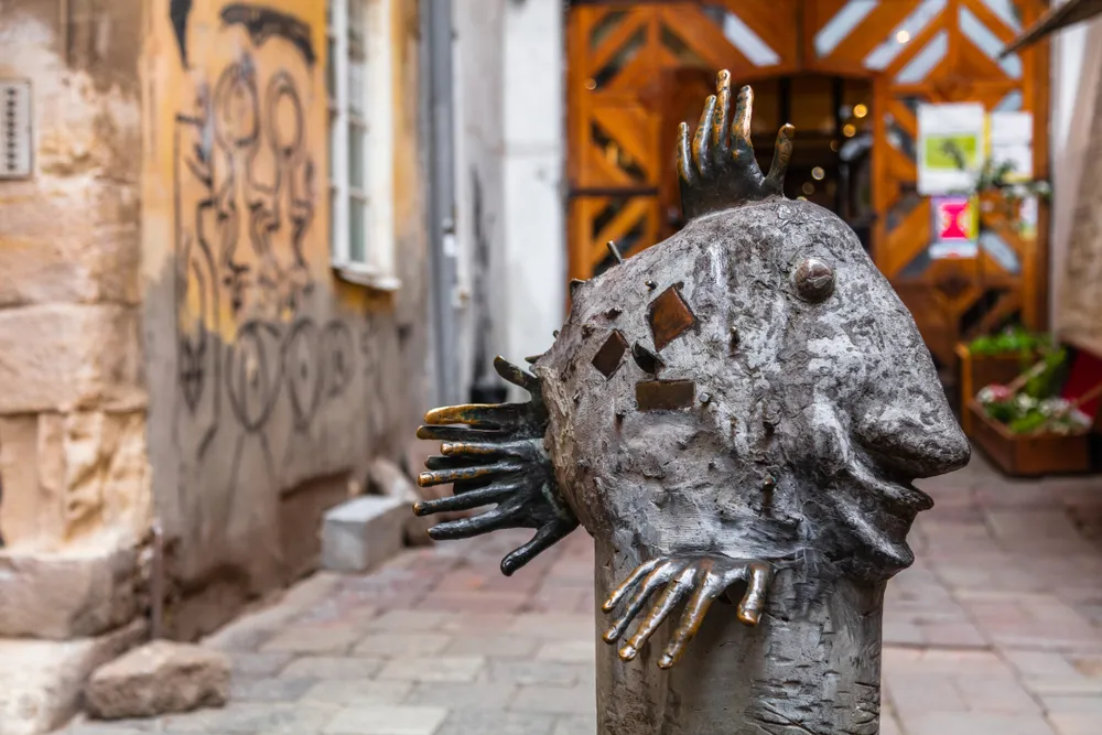 Во Львове установили памятник улыбке. Это небольшой постамент рыбы, которая улыбается прохожим и дарит им позитив. И эта рыбка не совсем обычная – вместо плавников у нее есть две ладони с множеством пальцев.
