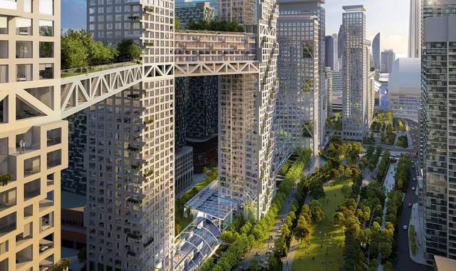В Торонто построят комплекс жилых небоскребов под названием Orca. В одной из башен обустроят офисный центр, а еще 8 будут жилыми домами. Это около 3 тысяч квартир. Здания между собой будут связаны между собой мостами и зелеными переходами.