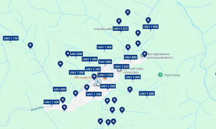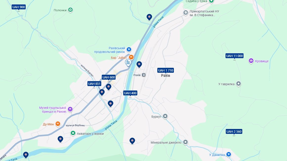 Цена в Рахове на жилье в период Рождества едва ли не самые низкие в горах – от 550 до 2 500 гривен, хотя предложение несколько скромное, если сравнивать с Криворивней или Верховиной.