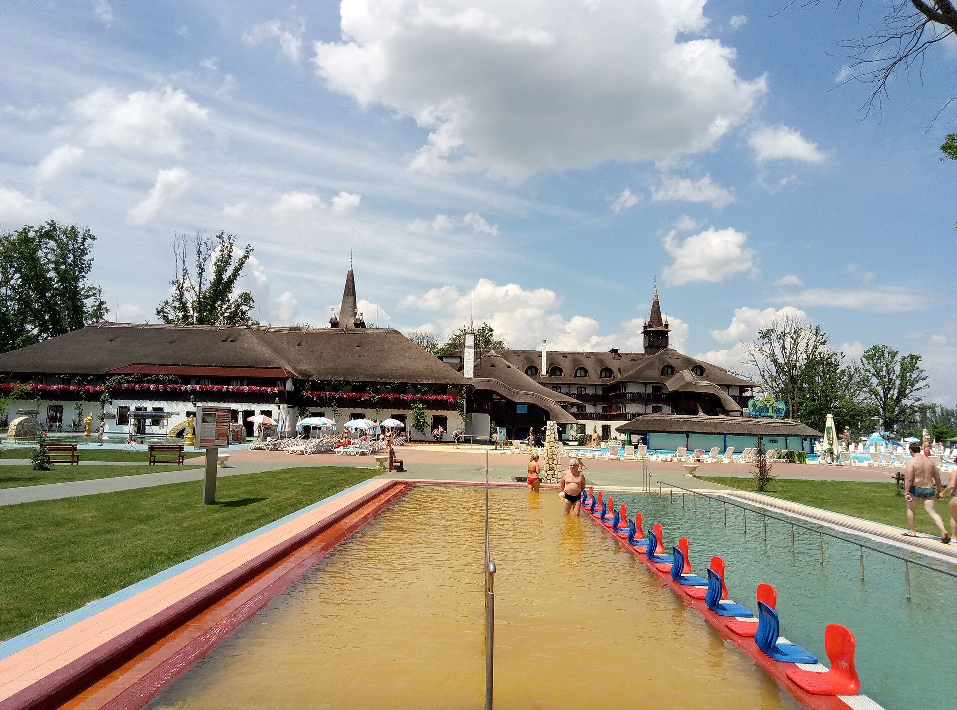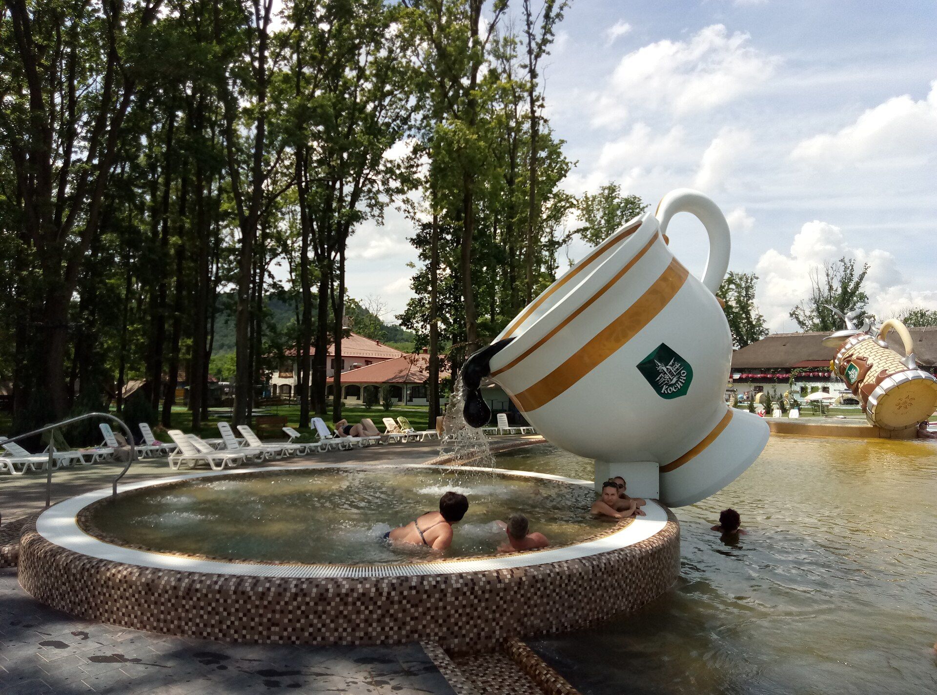 Это большой курорт с термальными бассейнами, который расположен в селе Косонь. Их наполняют горячей минеральной водой, которую выкачивают из скважин. На поверхность вода попадает с температурой 55 градусов, охлаждается до 41 градуса, а потом подается в бассейны.