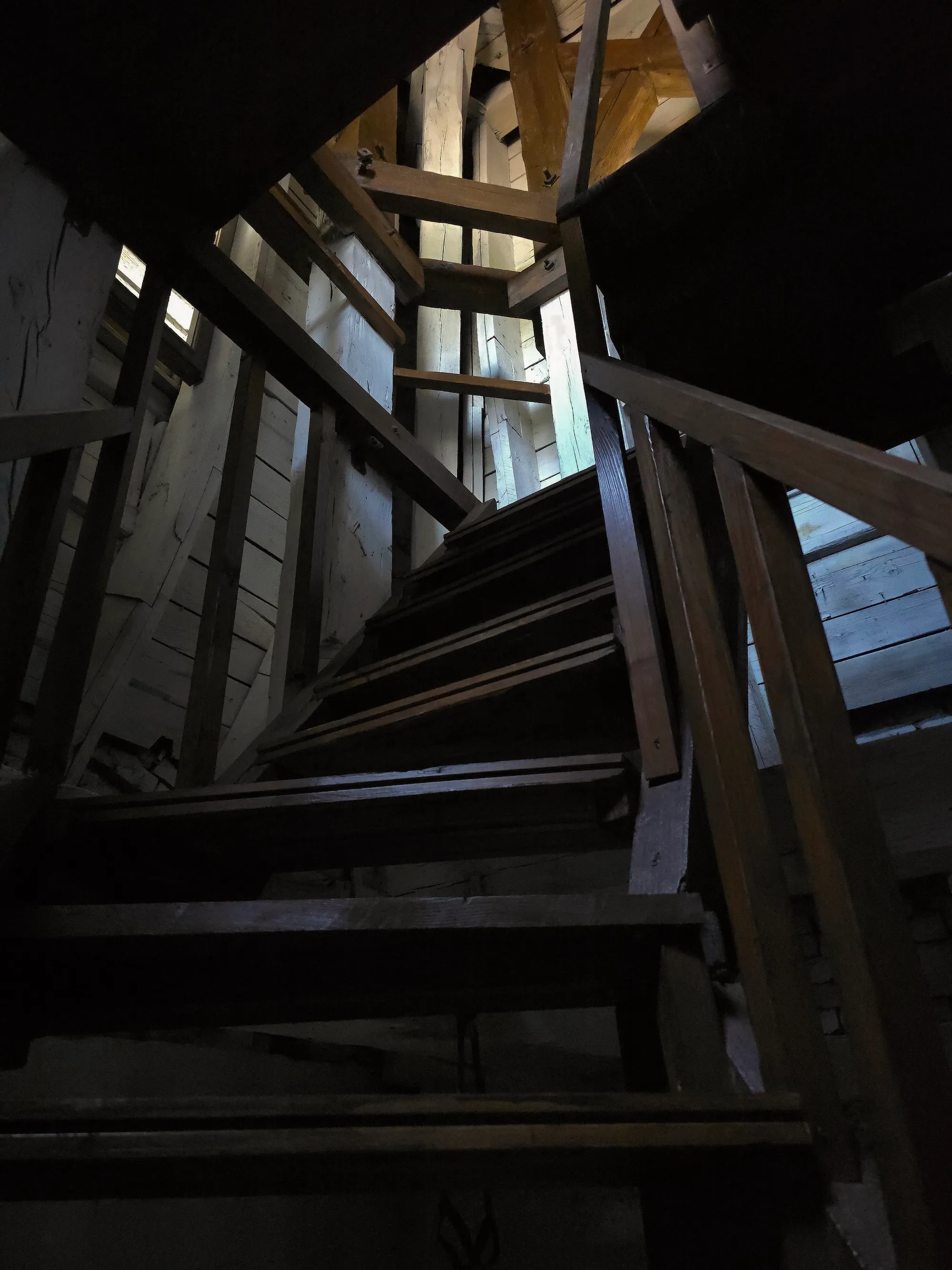 Тарас рассказал, что как только во время ремонта появлялись новые ступени, они с огромным интересом поднимались и изучали новые пространства, которые наконец становились доступными. И уже под конец ремонта он позвал коллег из Органного зала и музея Крушельницкой осмотреть башню. Собственно, они были одними из первых, кроме мастеров, конечно, кто смог подняться на сам верх уже после восстановления доступа.