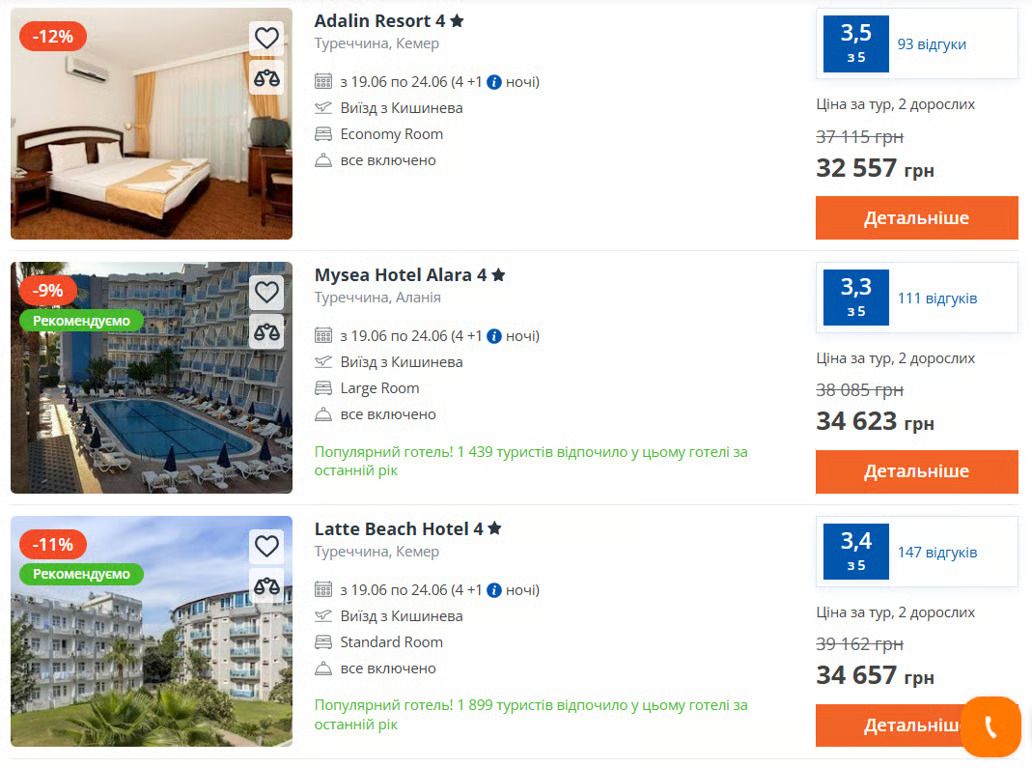 - Отдых "все включено" на 4 ночи в четырехзвездочном отеле в Кемере стоит 32,6 тысячи гривен для двоих, а в Алании – 34,6 тысячи гривен.
