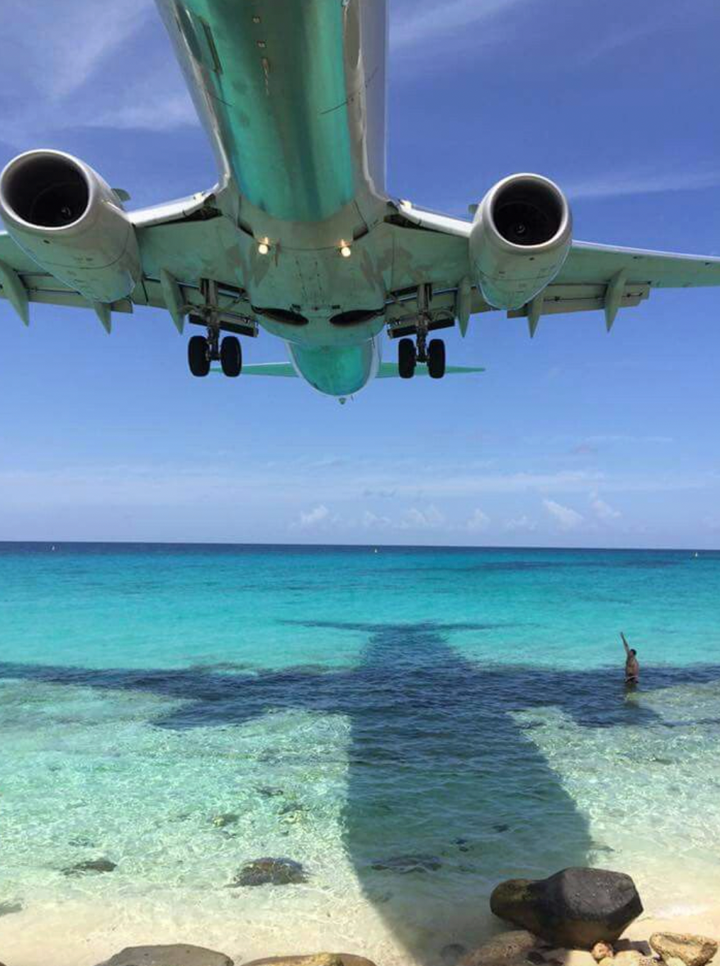 Пляж Махо на карибском острове Сен-Мартен является известным местом отдыха для любителей острых ощущений и авиационных энтузиастов. Пока посетители греются на солнце и купаются в бирюзовых водах, менее чем в 30 метрах над их головами внезапно пролетает самолет Boeing 787 Dreamliner.