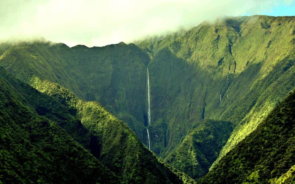 Водопад высотой 900 метров, расположенный в северо-восточной части гавайского острова Молокаи. Он образовался на коротком сезонном потоке и падает через край одной из самых высоких прибрежных скал мира.