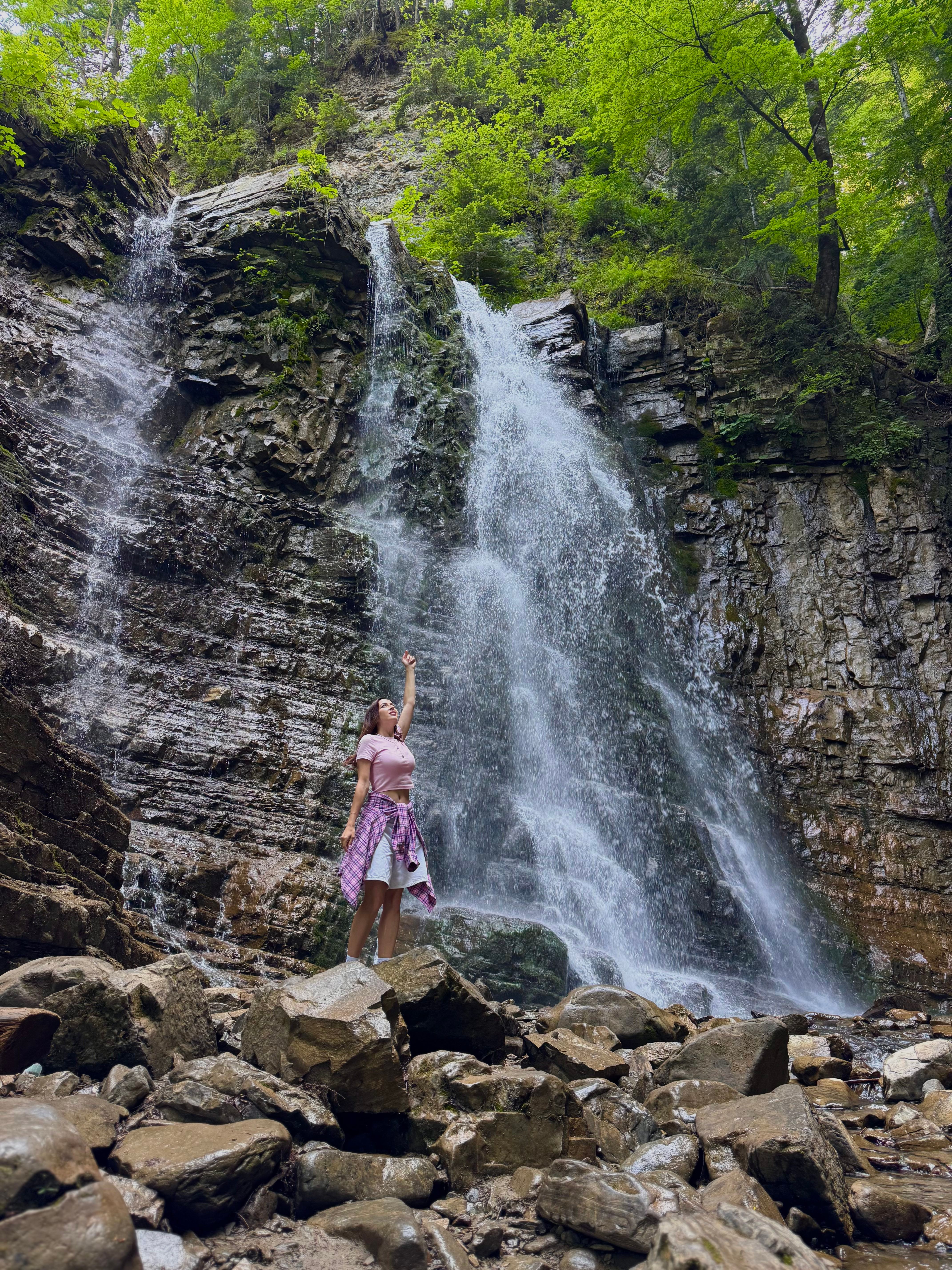 Четвертое: Манявский водопад, к которому надо немного пройтись пешком по горам, но это чрезвычайный вид и чрезвычайный опыт, ведь это один из самых высоких водопадов Украины.