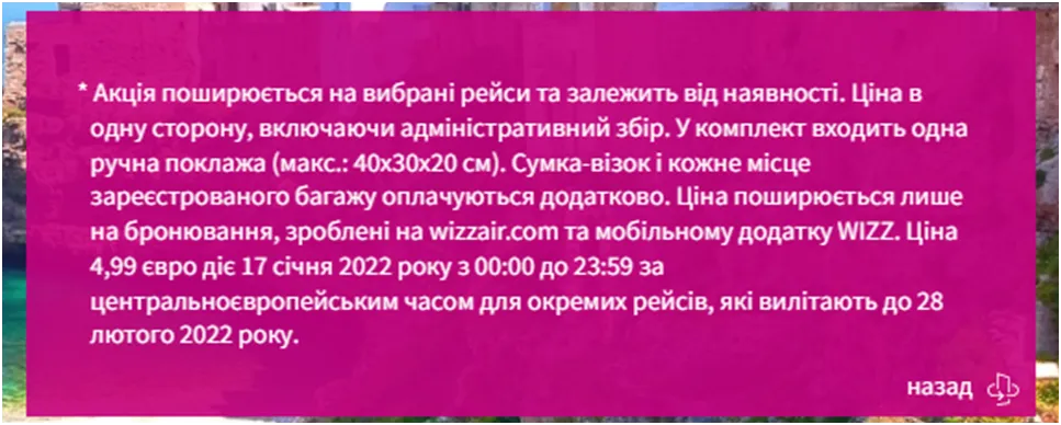 Детали распродажи Wizz Air / Скриншот с сайта авиакомпании