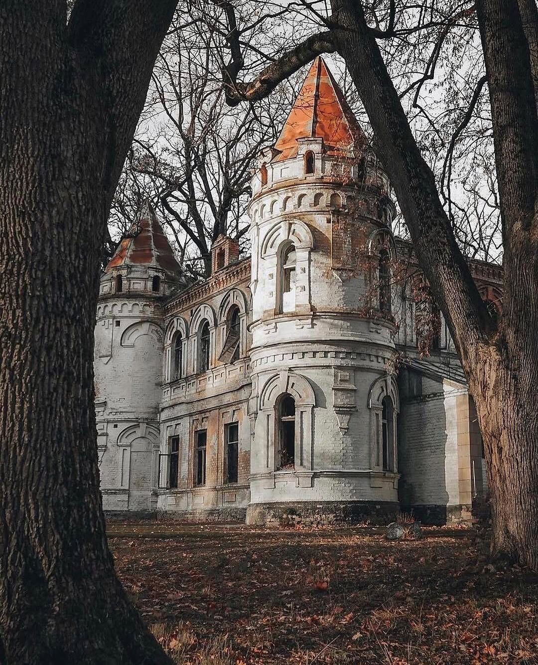 А это уже заброшенный замок под Киевом. Его возвели в первой половине XIX века. Сейчас это сооружение, к сожалению, находится в плачевном состоянии. При "советах" здесь работал детский сад, клуб, а также сельский совет. К сожалению, масштабный пожар в 2000 году уничтожил в этом замке все внутри: и мебель, и старинные экспонаты.