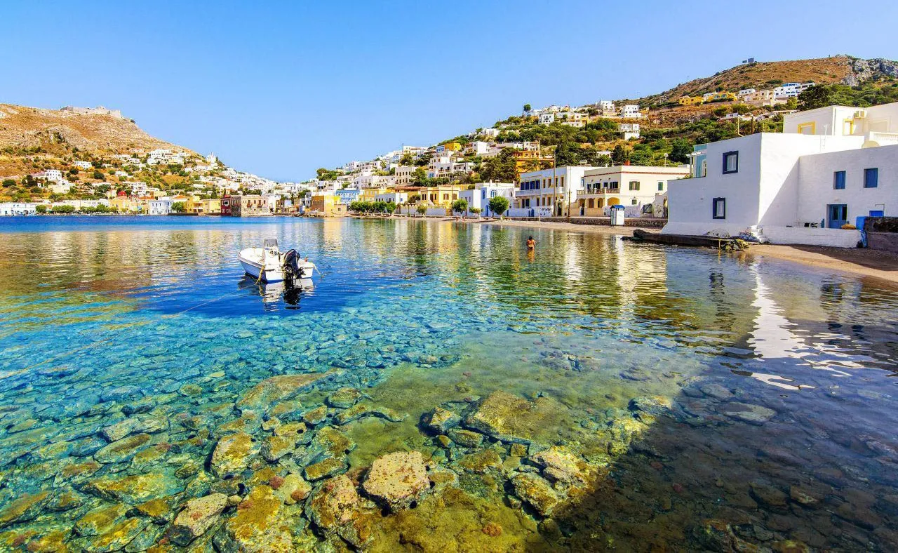 На острове есть несколько живописных бухт с бирюзовой водой и тихие пляжи, такие как Алинда, Агия Марина и Ксерокамбос.