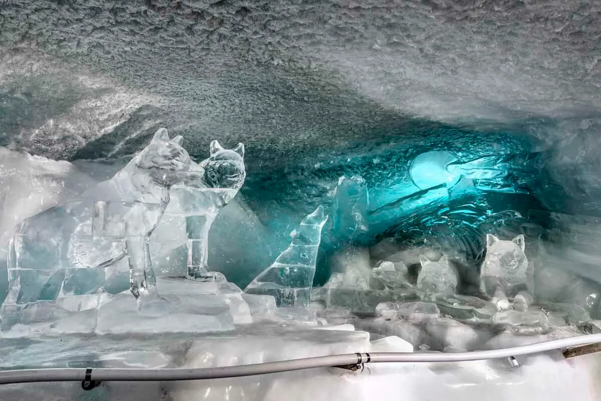 Та справжня магія трапляється тоді, коли спуститися на 15 метрів вглиб самого льодовика. Тут є палац – замерзла країна чудес, що складається з блискучих крижаних тунелів, вигадливих скульптур і навіть крижаної гірки. Це частково художня виставка, частково природне диво, та головне – абсолютно незабутнє місце.