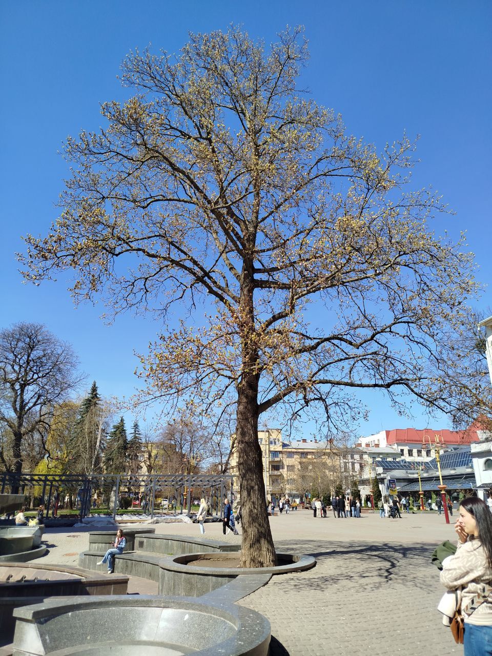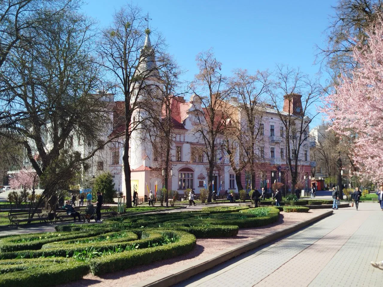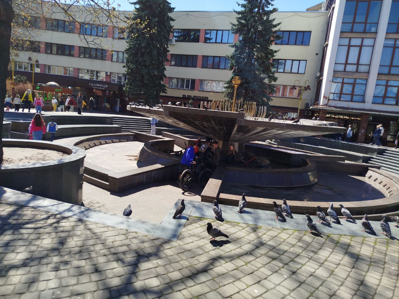 Повз галерею, Фортечним провулком (не забудьте зробити фото біля пам'ятника Адаму Бернсу), вимандруєте на Вічевий майдан. Це – зона відпочинку, прогулянок, катання на велику, посиденьок біля фонтану та найстарішого тюльпанового дерева.